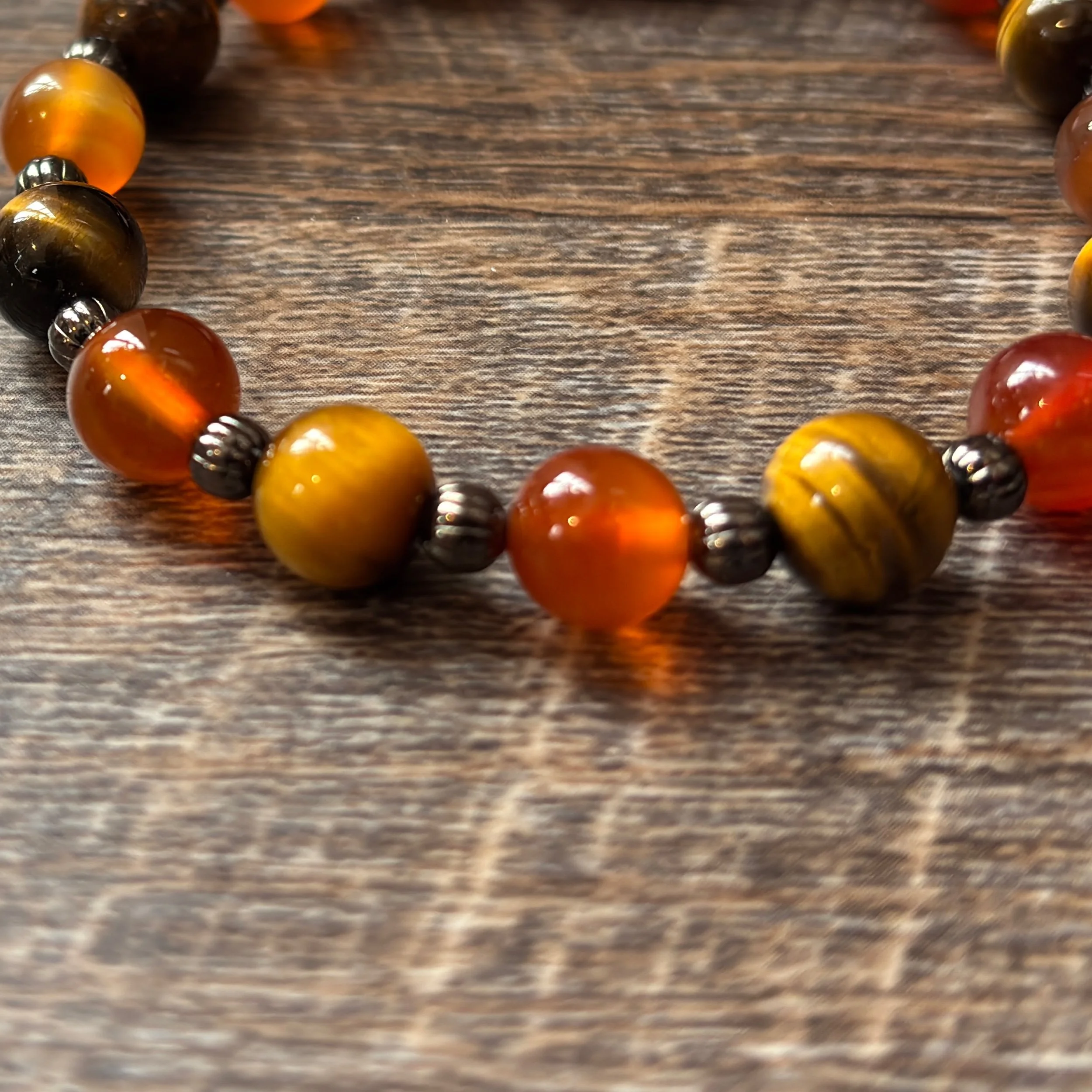 This protection bracelet combines Carnelian, Citrine and Tiger’s Eye to create a powerful shield of grounding, courage and clarity. Together, these stones amplify confidence, attract positive energy and help guard your spirit from negativity.