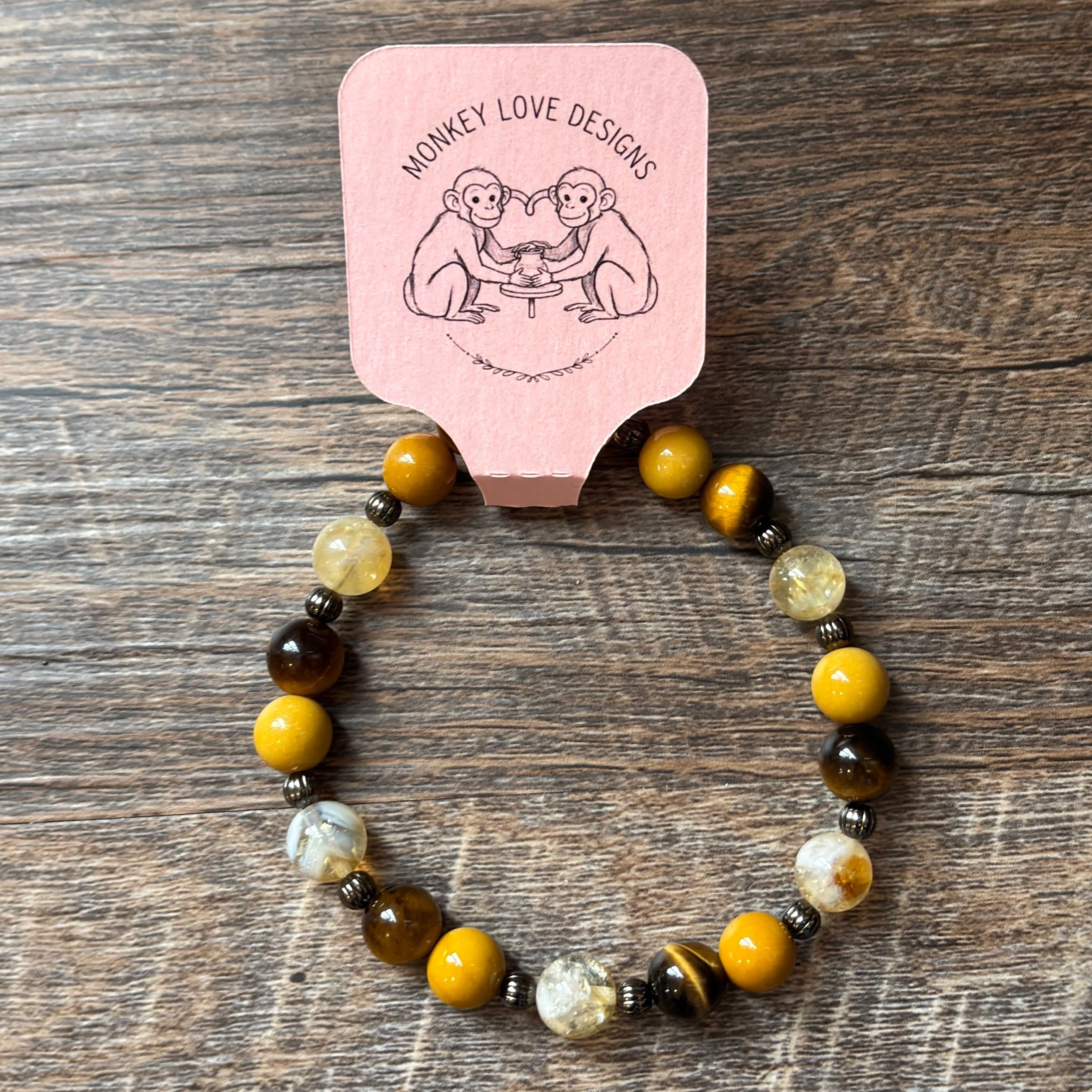 This bracelet combines Tiger’s Eye, Yellow Jasper and Citrine — stones traditionally linked to creativity, confidence and inspired thinking. Worn together, they’re believed to awaken imagination, strengthen focus and encourage ideas to take shape.